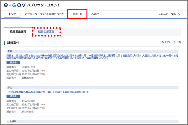 国土交通省において、ご意見・情報を募集中の案件と、提出されたご意見・情報に対する国土交通省の考え方をとりまとめた実施結果を以下に掲載しています。