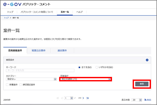 2001年1月6日以降に公表されたパブリックコメント等の結果については、国土交通省パブリックコメントの欄をご覧ください。