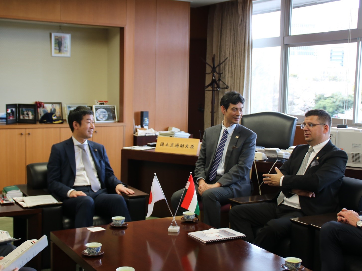 On Friday the 7th of April, 2017, H.E. Deputy Minister Tanaka of Land, Infrastructure, Transport and Tourism received a courtesy visit by the Hungarian Minister of National Development.