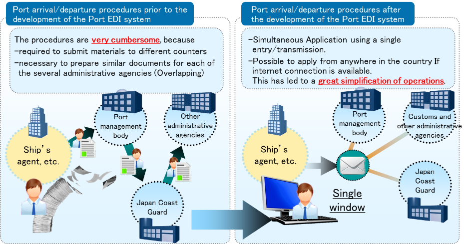In addition, the FAL Convention (Convention on Facilitation of International Maritime Traffic) was signed in 2005, and the procedures themselves, including the port EDI system, were made compliant with the international standard FAL format for port access control procedures. Other procedures have also been standardized and simplified, and in October 2009, electronic applications for these procedures were made possible.