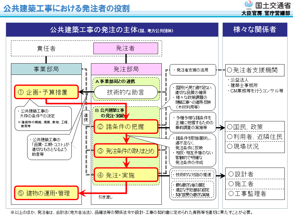 平成29年1月20日、国土交通大臣宛てに、社会資本整備審議会から「官公庁施設整備における発注者のあり方について」答申がありました。答申では、公共建築工事の「発注者の役割」を明確にするとともに「その役割を果たすための方策」が提言されており、全ての公共建築工事の発注者へ向けた内容となっています。