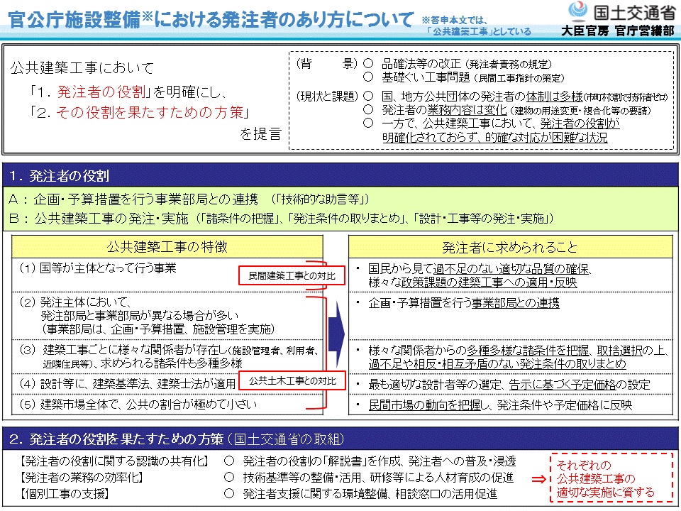 ■品確法の改正等とこれを踏まえた官庁営繕の取組を次のとおりまとめました。