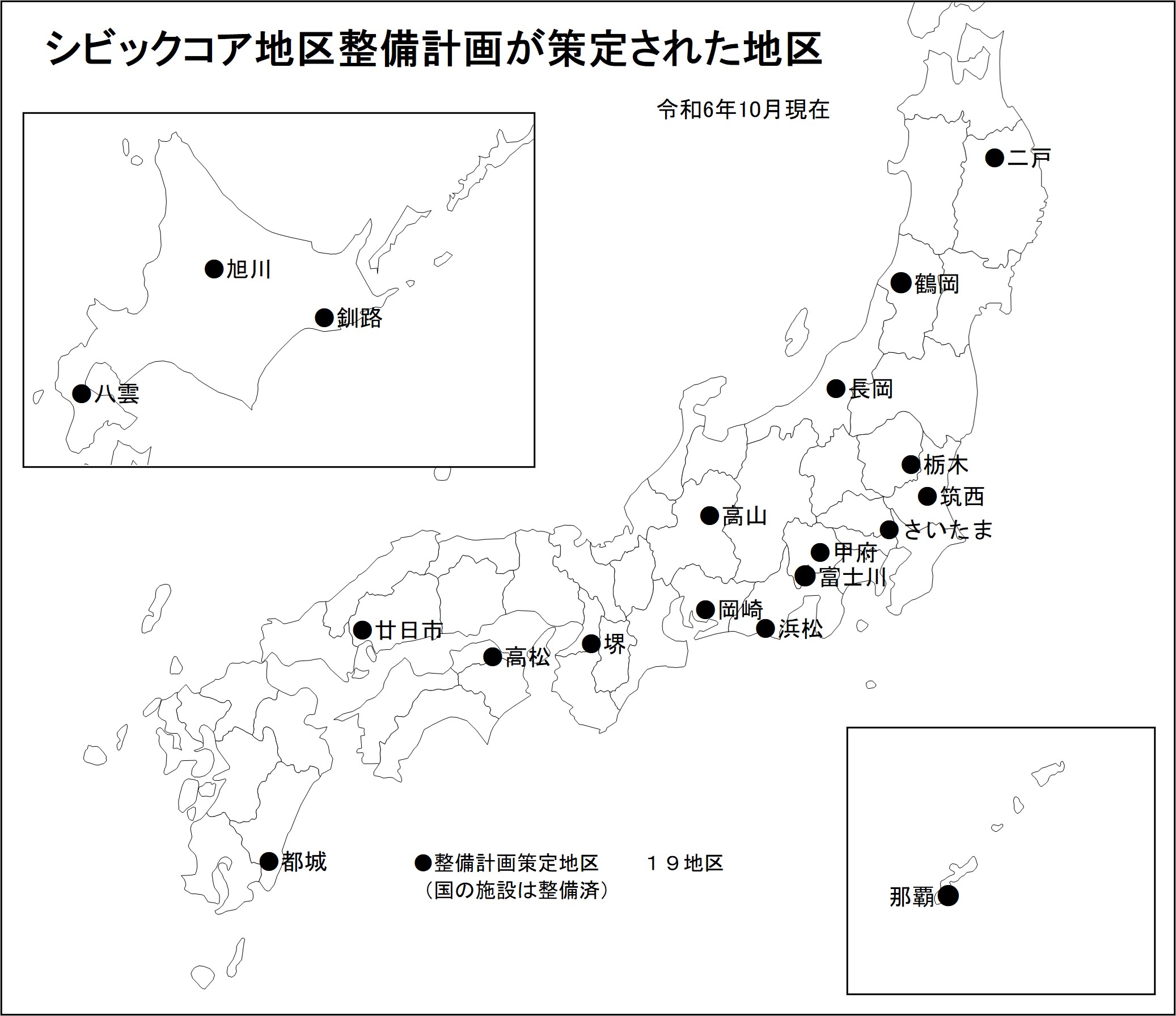 | シビックコア地区名称 | 市町村名 | 地区面積 (ha) |