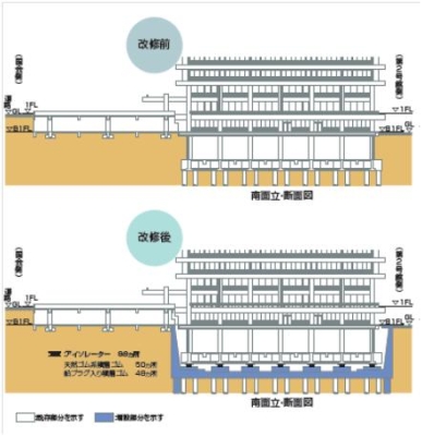 官庁施設は、来訪者等の安全を確保するとともに、大規模地震発生時に災害応急対策活動の拠点として機能を十分に発揮できるよう、総合的な耐震安全性を確保したものである必要があります。