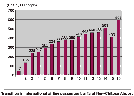 Thus, New-Chitose Airport is attracting attention as a core airport for the internationalization of the area and bears an important role in the domestic and international airline service network as a hub airport in Japan.
