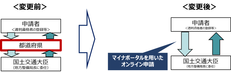 登録を受けた地方整備局宛てにご申請いただくようお願いいたします。