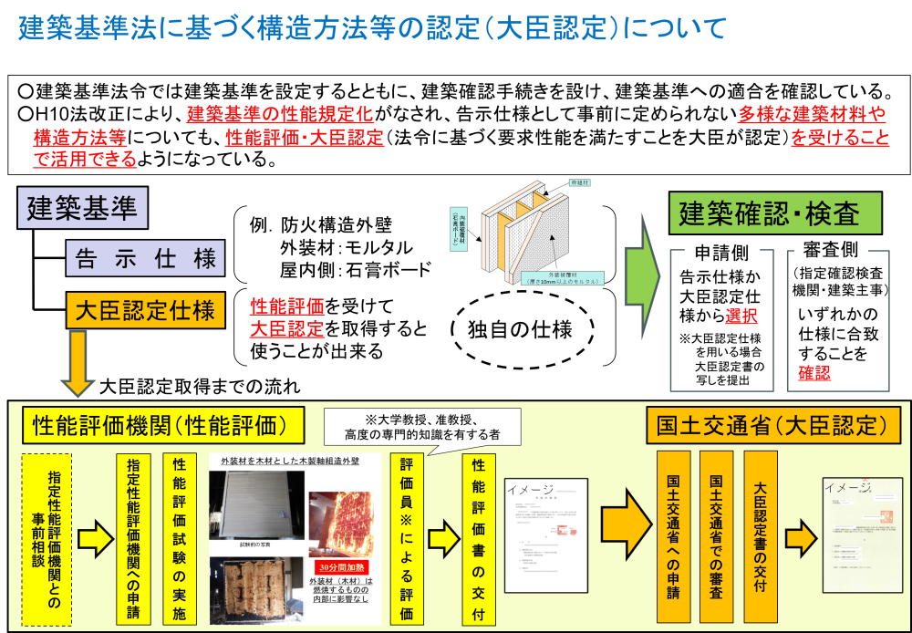 建築基準法令で性能を定め、その性能を満たす「国土交通大臣の認定を受けたもの(大臣認定品)」