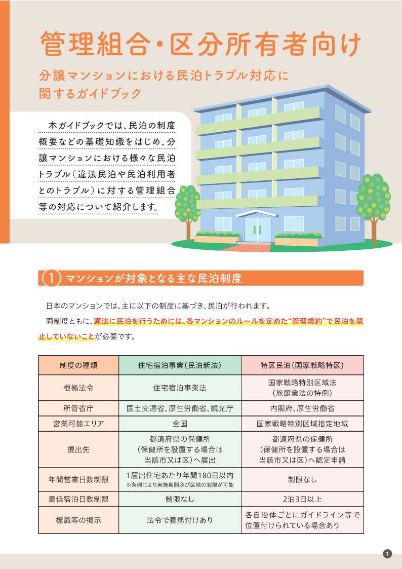 ⇒【A3見開き】管理組合・区分所有者向け 分譲マンションにおける民泊トラブル対応に関するガイドブック