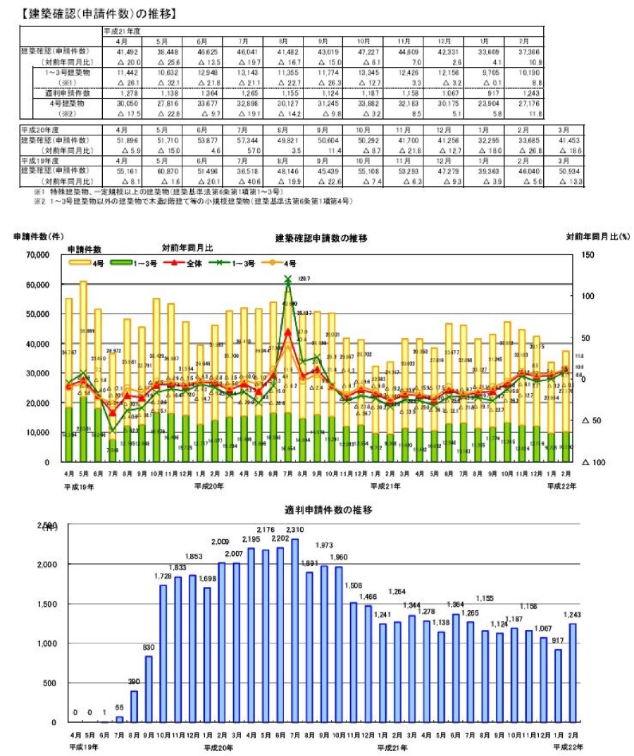・2月の建築確認申請件数は、前月より増加し、対前年同月比は増加。対前年同月比は1~3号建築物、4号建築物ともに増加。構造計算適合性判定の申請件数は前月より増加。