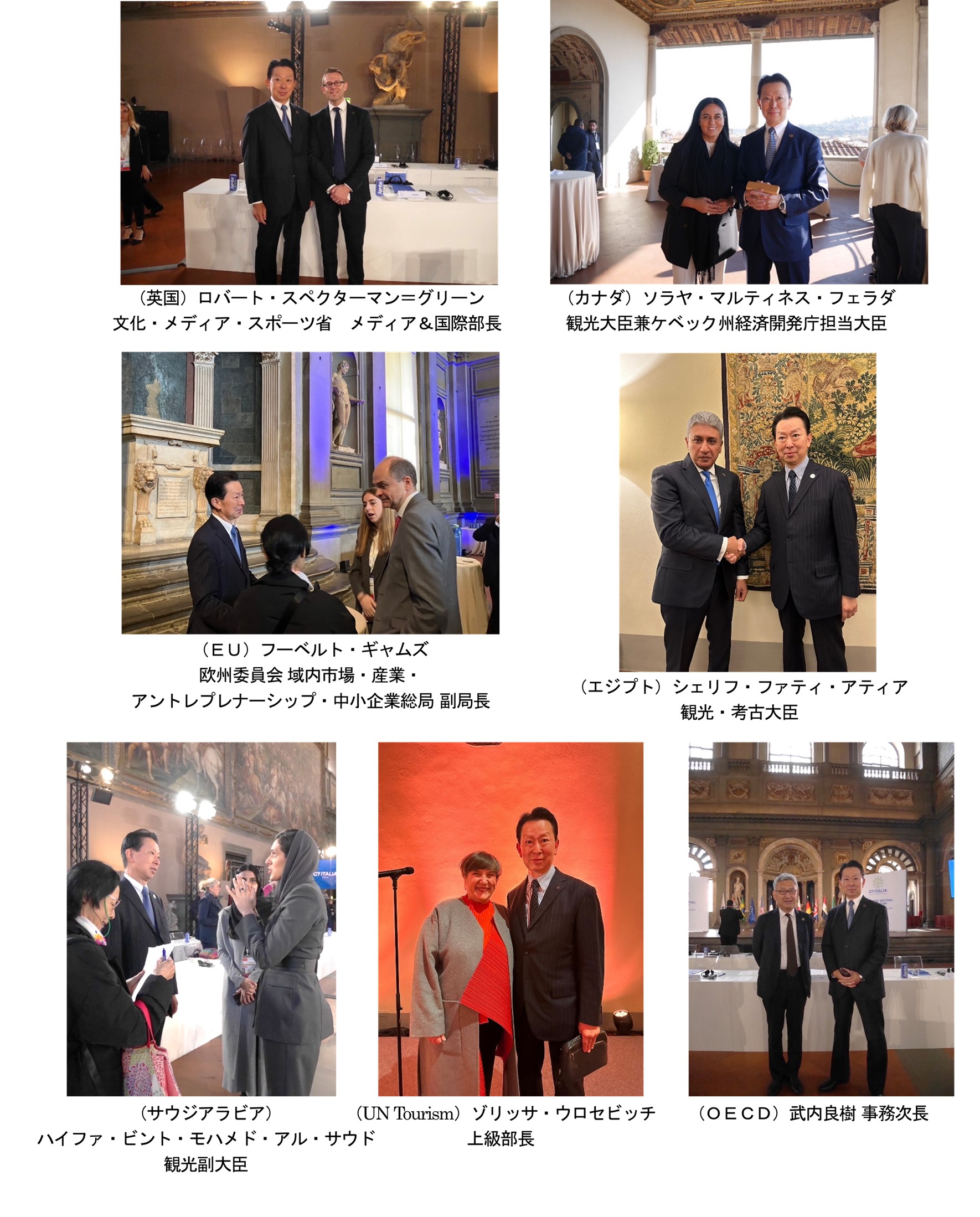 我が国からは、それぞれのテーマに関する我が国の課題や取組、特に持続可能で強靱な観光について、本年11月に宮城県仙台市にて観光レジリエンスに関する閣僚級会合を開催し、観光レジリエンス向上に向けた今後の取組の方向性を取りまとめたこと等について発信しました。