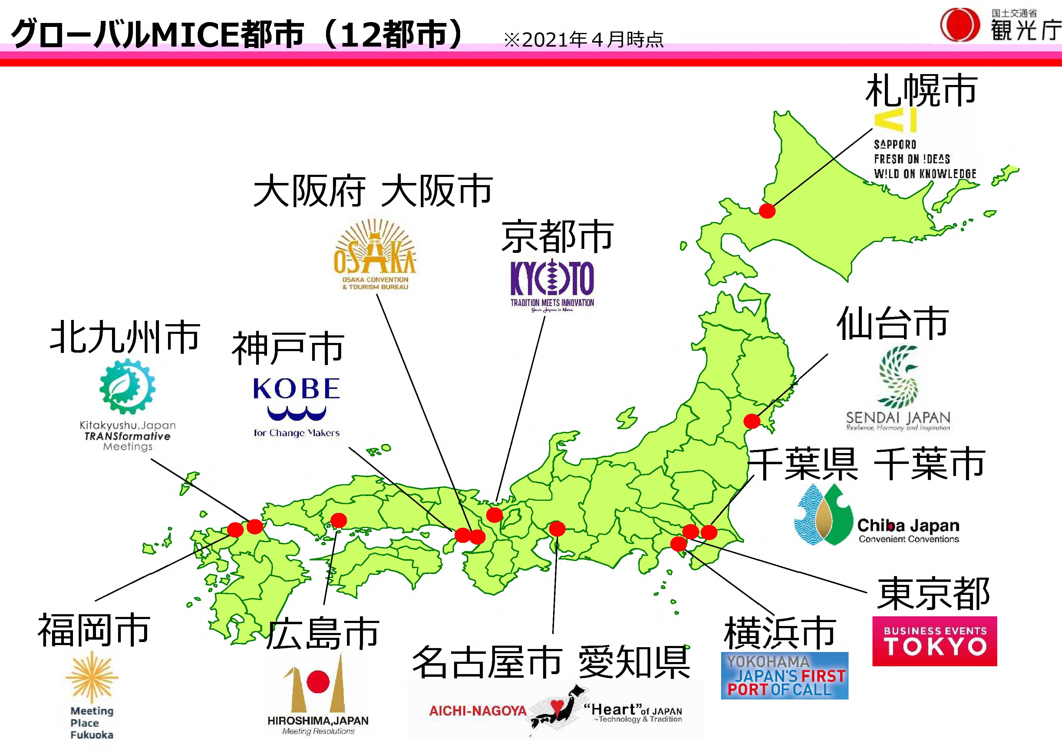 現在は、これら12都市を統一的に「グローバルMICE都市」と呼称しています。