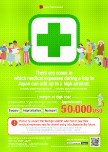 観光庁では、民間医療保険の加入勧奨のためのチラシ・動画を作成しておりますので、訪日外国人旅行者へのツアー販売等にあたり、ご活用ください。