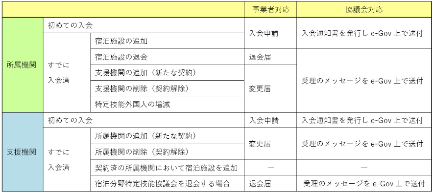 ※e-Gov電子申請にて宿泊分野特定技能協議会の入会・退会・登録情報の変更届出の申請が可能です。