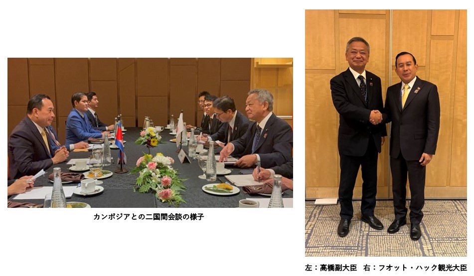 高橋副大臣は、カンボジアのフオット・ハック観光大臣と二国間会談を行い、日カンボジア間の今後の観光交流の促進や観光分野における協力等について意見交換を行いました。