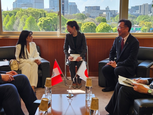 4月14日、国定政務官は、ペルー共和国レオン通商観光大臣による表敬訪問を受けました。