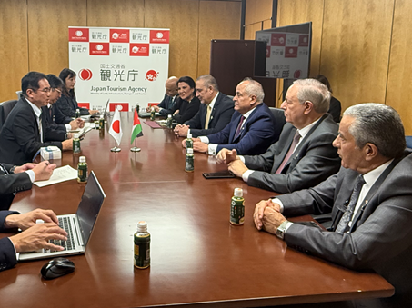 会談では、議員一行から、互いの人的交流の深化についての期待が述べられたのち、日本・ヨルダン間の観光協力の促進に向けて意見交換を行いました。