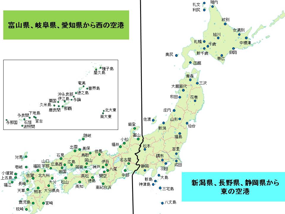 富山県、岐阜県、愛知県以西の空港(大阪航空局ホームページへ)