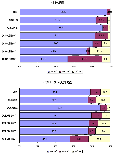 3.いずれにしろ、第一航路のあり方については、航路屈曲角をどうするかということだけではなく、航路の幅や長さ等も重要な要素であり、今後さらに、航路の拡幅等のハード面の対策と通航方法等のソフト面の対策と併せて、総合的に検討する必要があるというのが、プロジェクトチームメンバーの概ね共通した認識であった。 |