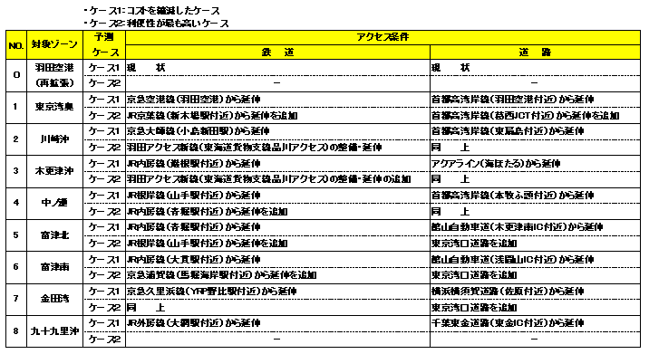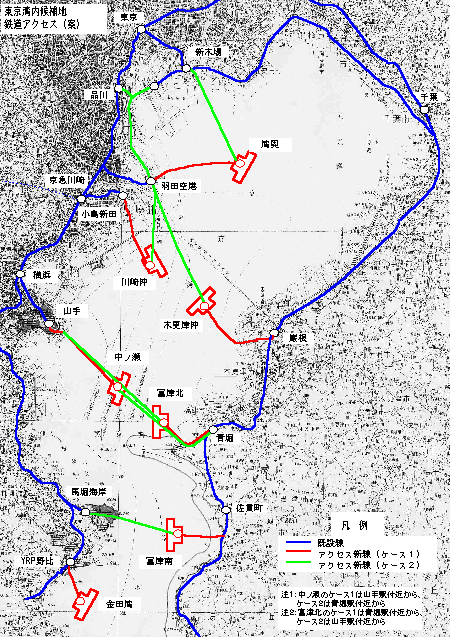東京湾内候補地鉄道アクセス(案)