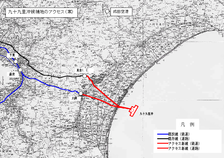 九十九里沖候補地のアクセス(案)