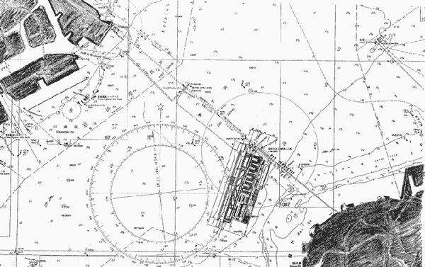 航空機騒音予測コンター概略検討図(湾央木更津沖案)(海ほたる空港案)