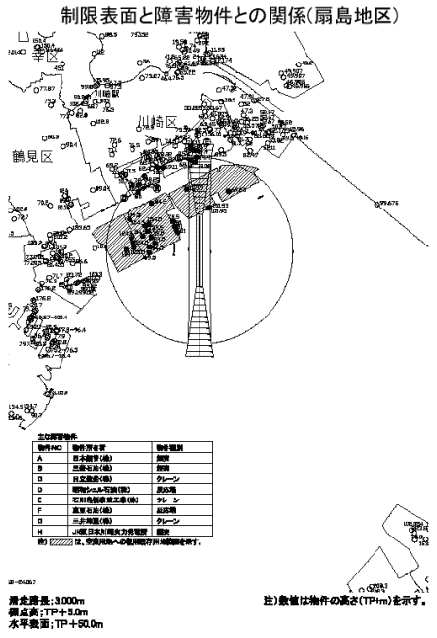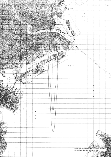 航空機騒音予測コンター概略検討図(扇島地区) (京浜臨海工業地域の東扇島・西扇島)