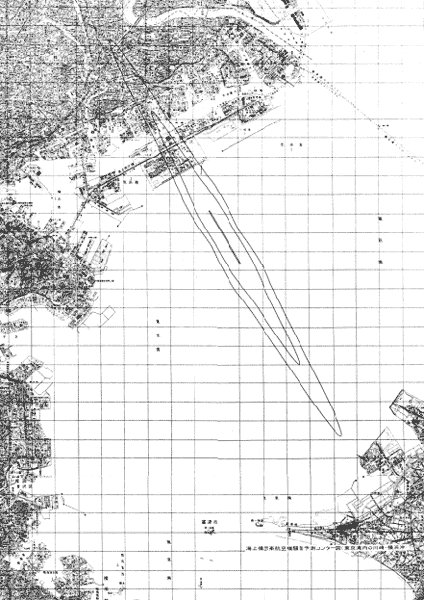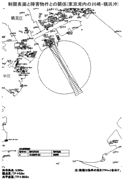 航空機騒音予測コンター概略検討図(東京湾内の川崎・横浜沖)