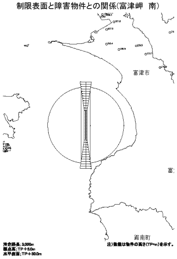 航空機騒音予測コンター概略検討図(富津岬 南)