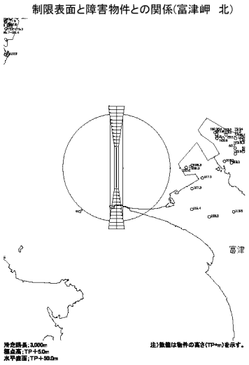 航空機騒音予測コンター概略検討図(富津岬 北)