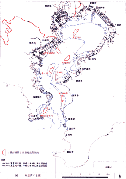 | 注2: | 東京湾奥(4本)の埋立面積1,600haは、滑走路1本の面積の4倍として算出。なお、現羽田空港の面積(1,271ha)と新たな空港(滑走路1本)の想定面積(410ha)の合計は1,681haである。 |