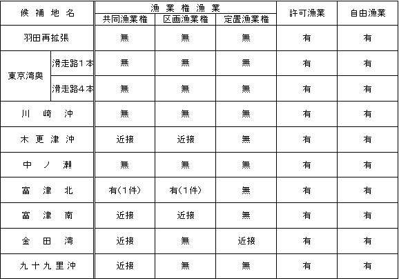 | 木更津沖 | 4 km | な し | 鉄道:24km、道路: 5km |