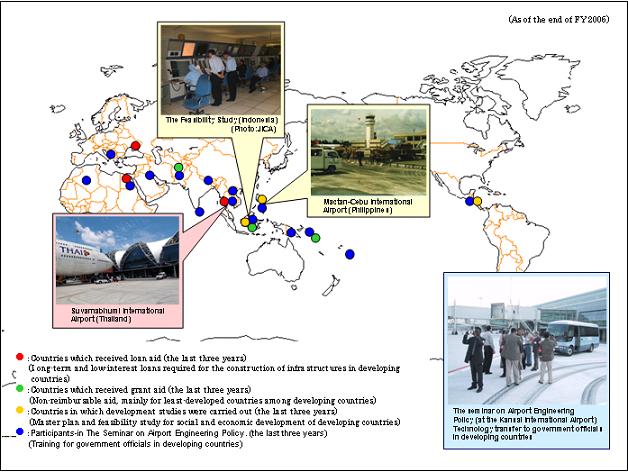 Japan provides developing countries with ODA (Official Development Assistance) as a part of its contribution to the international society. Among these activities, JICA (Japan International Cooperation Administration) and the Civil Aviation Bureau jointly promote technical cooperation and grant aid.