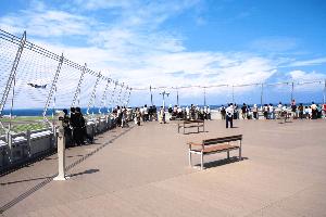 The 300-meter long observation deck called “Sky Deck” is one of the most popular places in the airport site, and you can observe airplanes nearby.