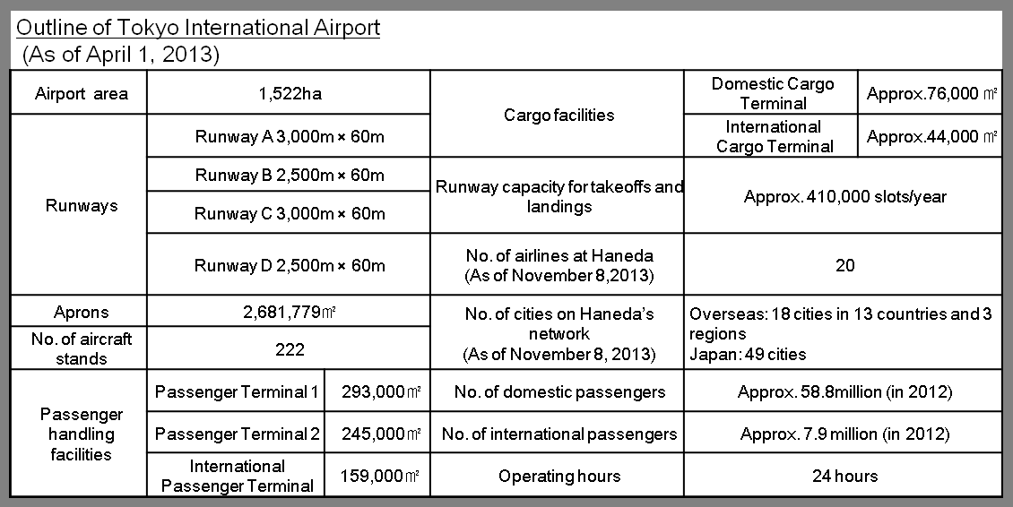 Haneda Airport, which is open 24 hours/ 7 days a week and is conveniently located in Tokyo, is expected to further increase the number of slots to 447,000 from the 2014 summer flight schedules.