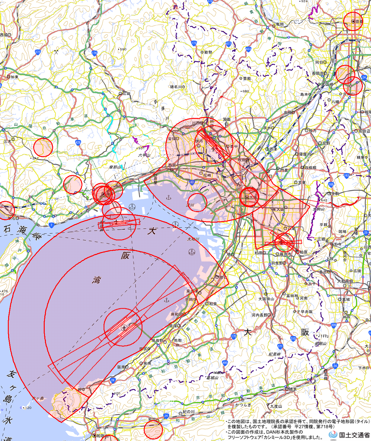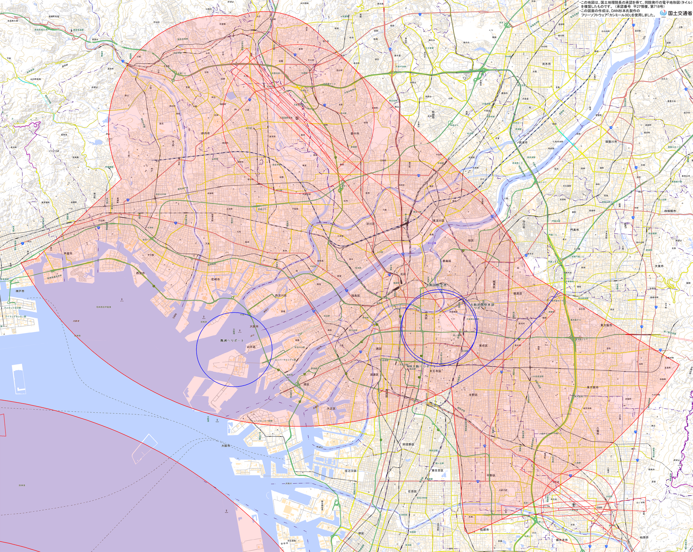 ※ 管制圏、特別管制区(PNG形式:8MB) <大阪航空局大阪空港事務所 TEL:06-6843-1293 Mail:cab-itm.kansei.drone@ki.mlit.go.jp>