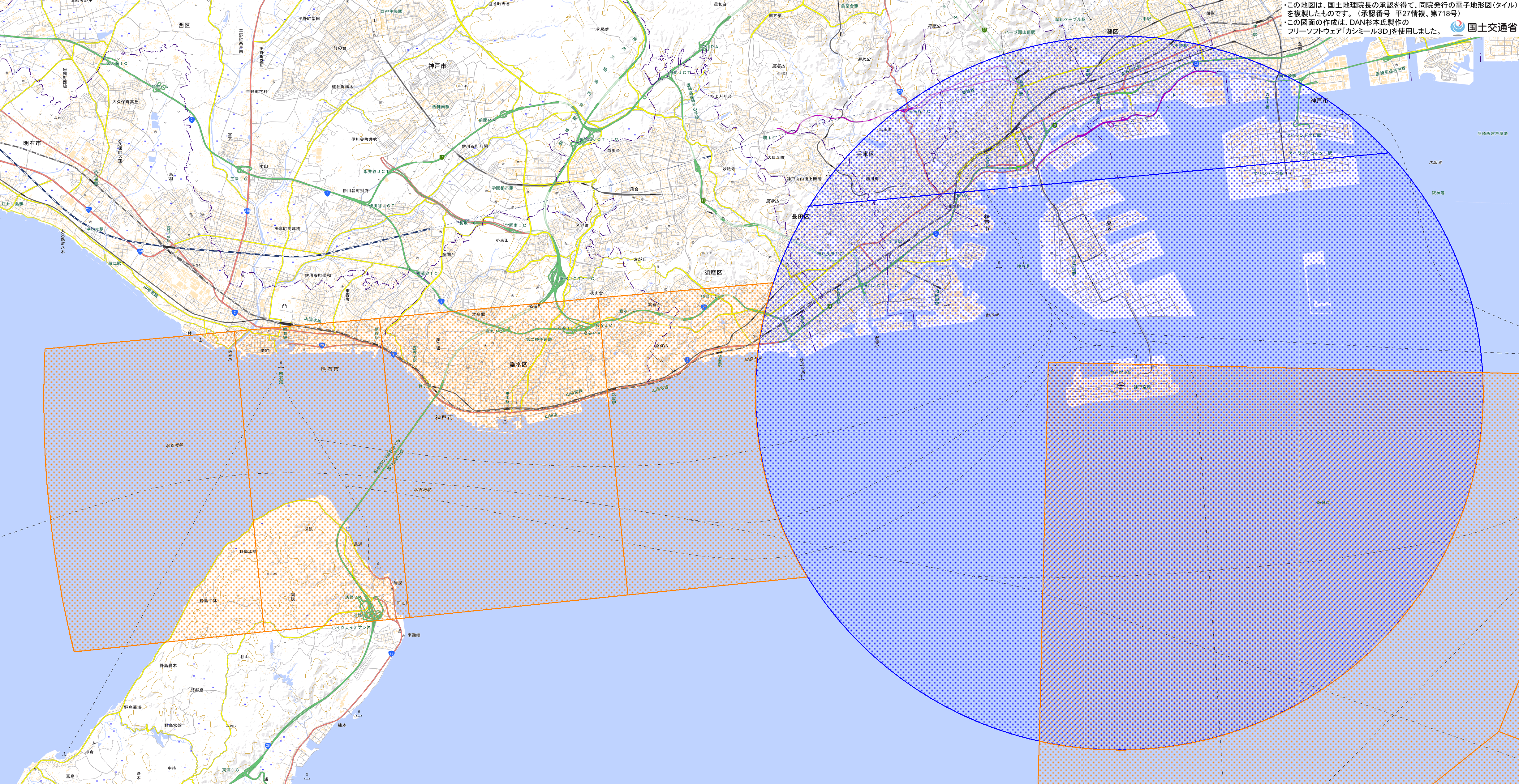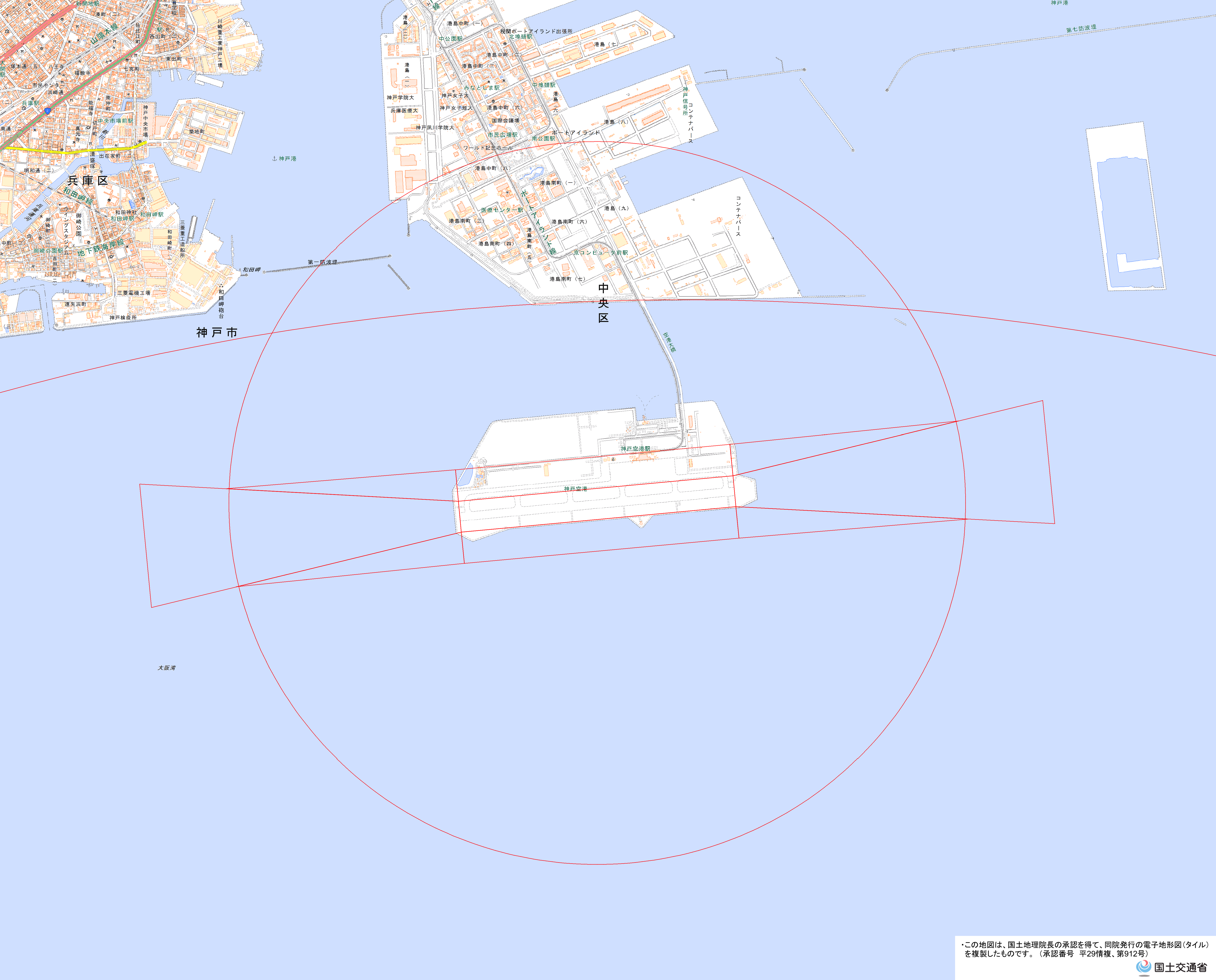 ・ 神戸空港(PNG形式:1MB、地理院地図) <神戸市港湾局空港調整課 TEL:078-595-6272>