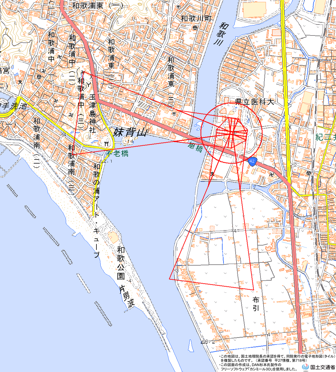 ・ 島精機ヘリポート(PNG形式:1MB、地理院地図) <島精機製作所 総務人事部 TEL:073-471-0511>