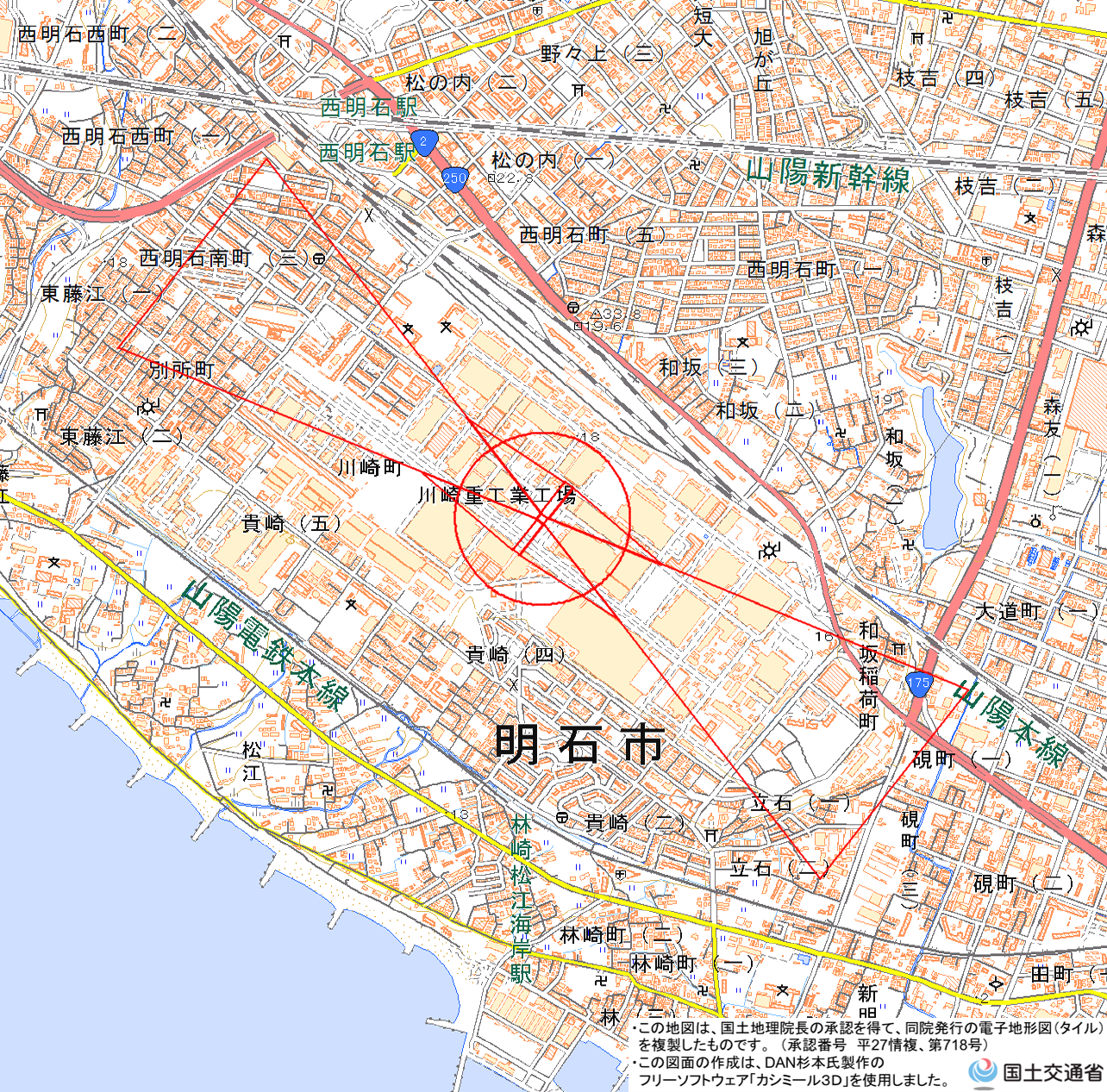 ・ 明石川崎ヘリポート(PNG形式:1MB、地理院地図) <川崎重工業株式会社 明石工場事務所 総務部 TEL:078-921-8590>