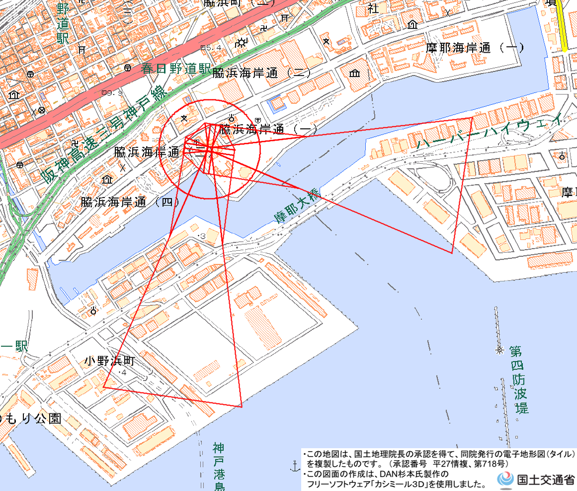 ・ NTT神戸中央ビルヘリポート(PNG形式:0.4MB、地理院地図) <株式会社NTTビジネスアソシエ西日本 関西支店兵庫事業所 TEL:078-326-6509>