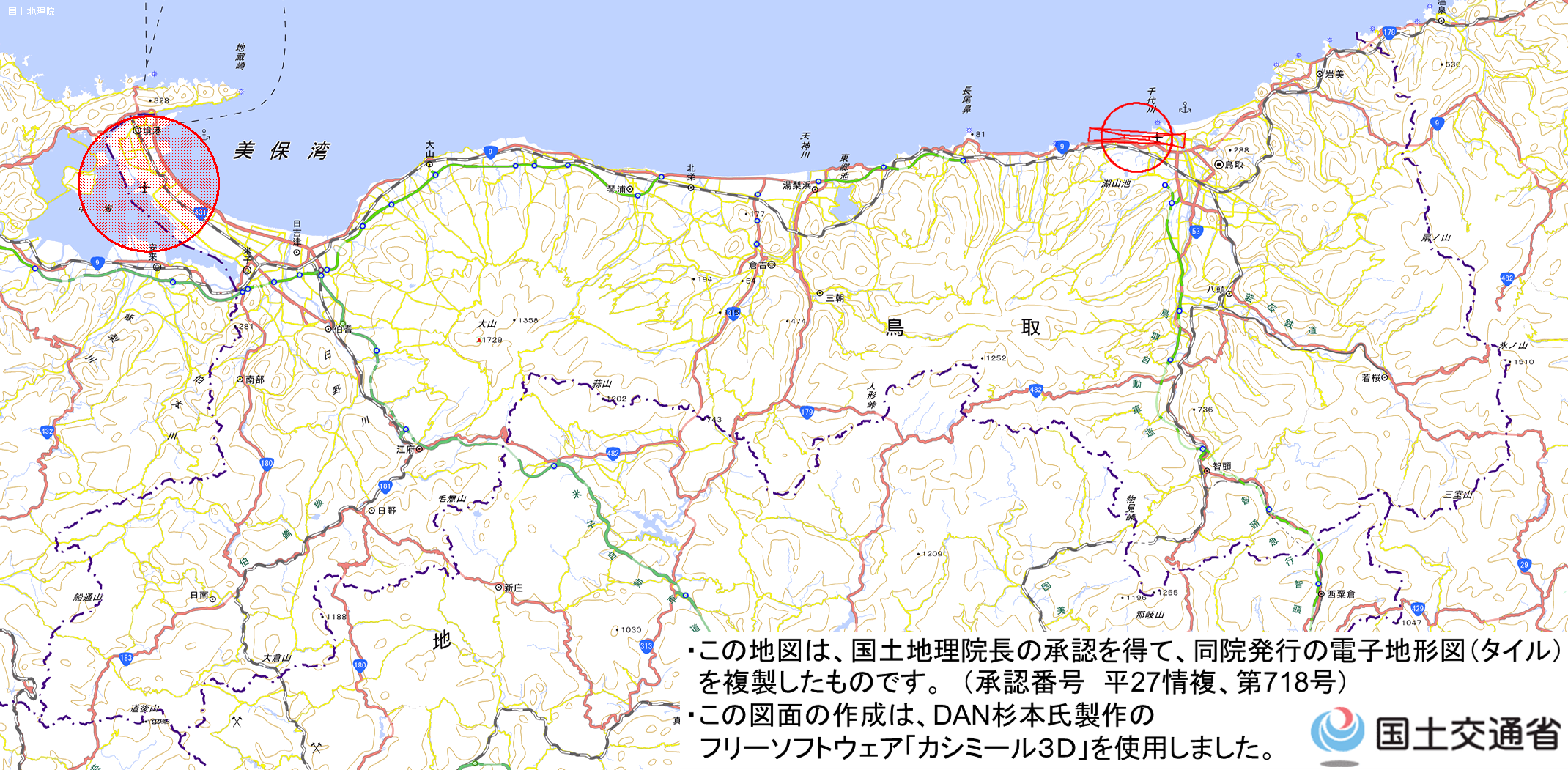地理院地図) <鳥取県鳥取空港管理事務所 TEL:0857-28-1150>