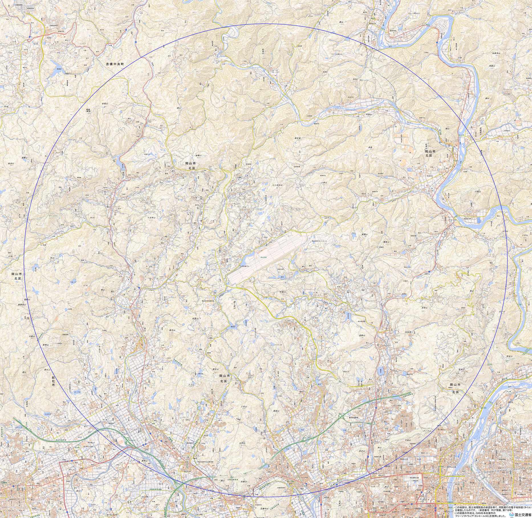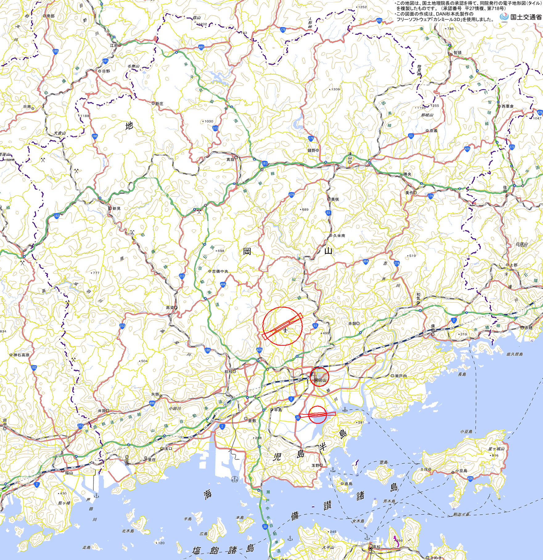 地理院地図) <岡山県岡山空港管理事務所 TEL:086-294-5550>