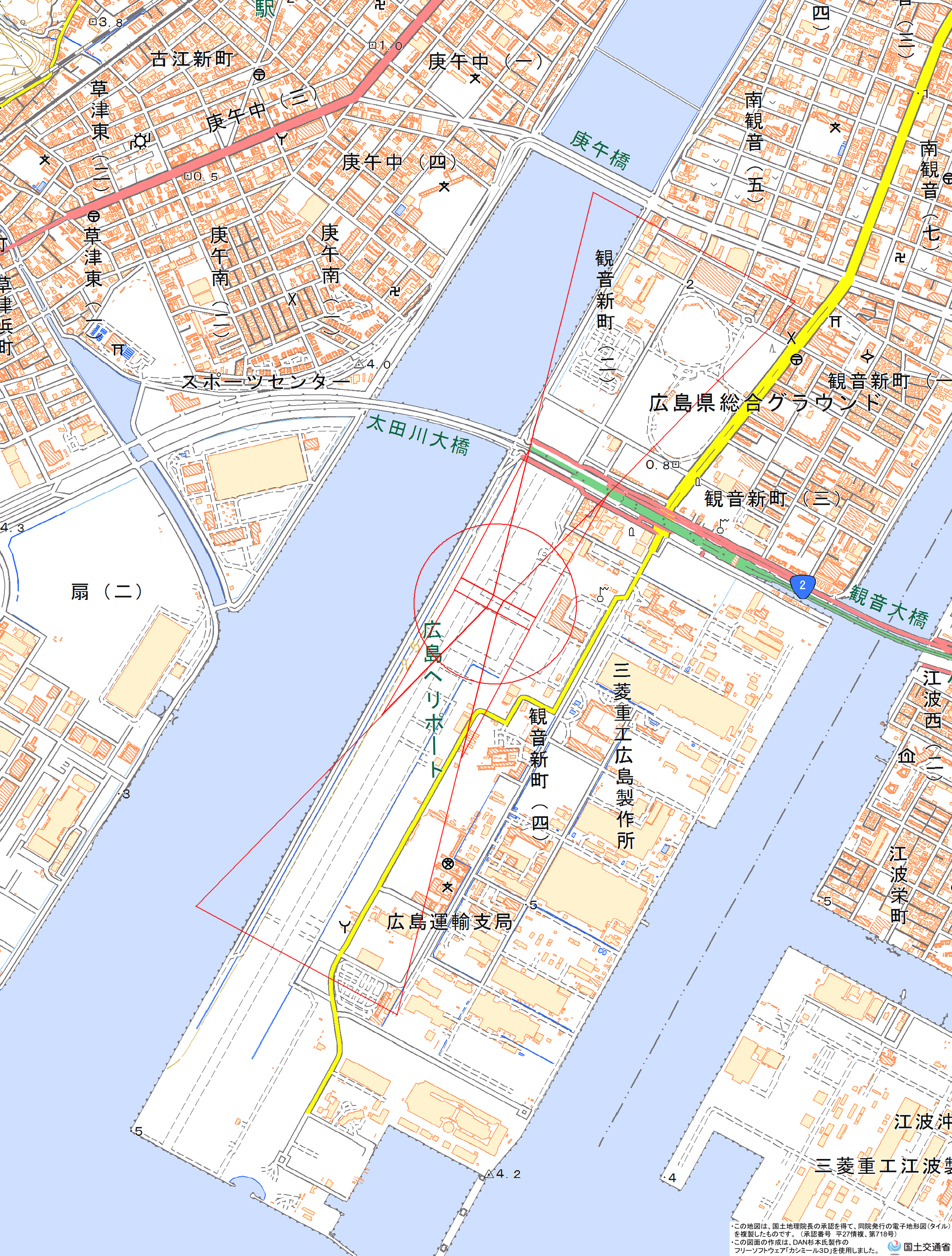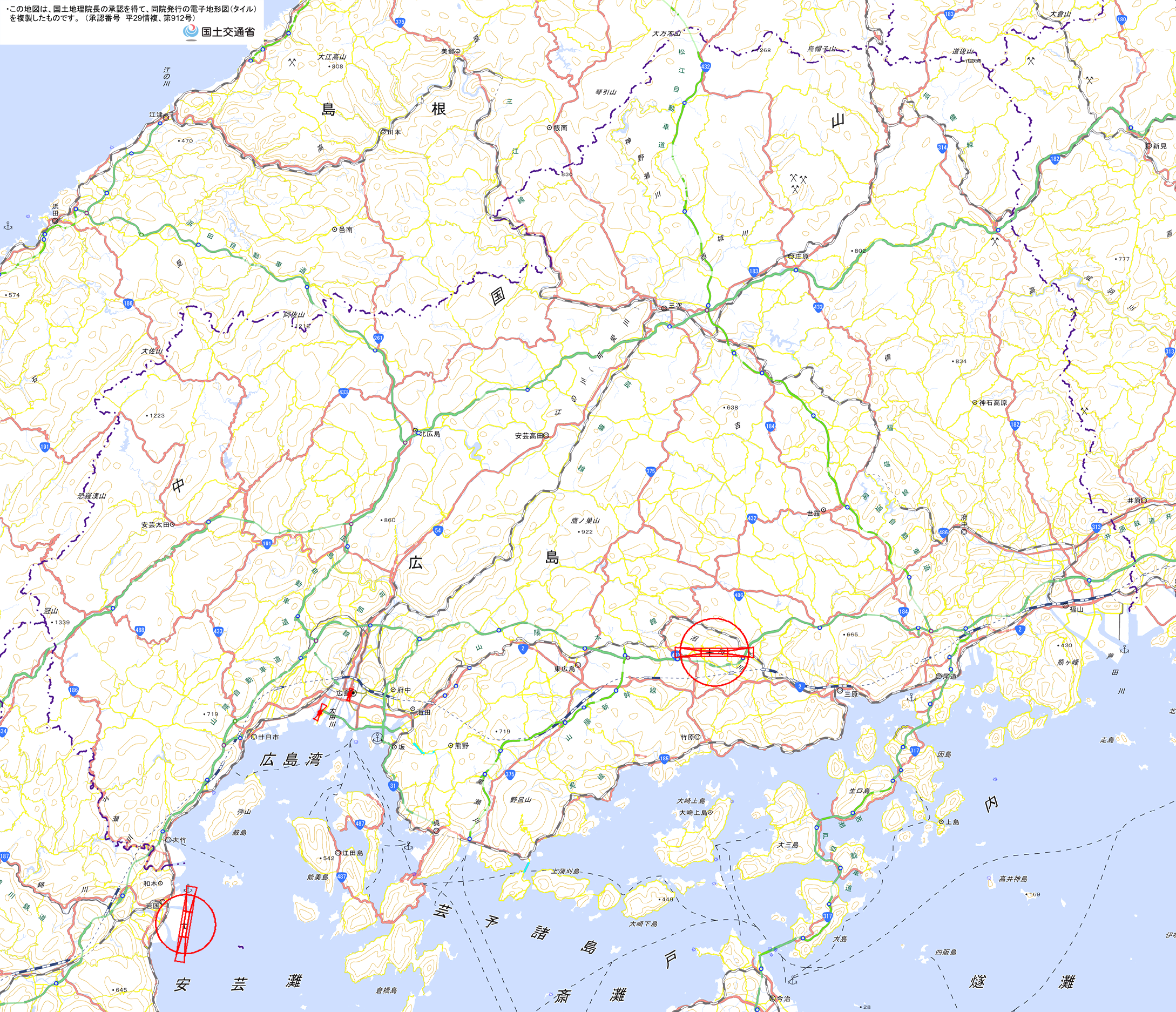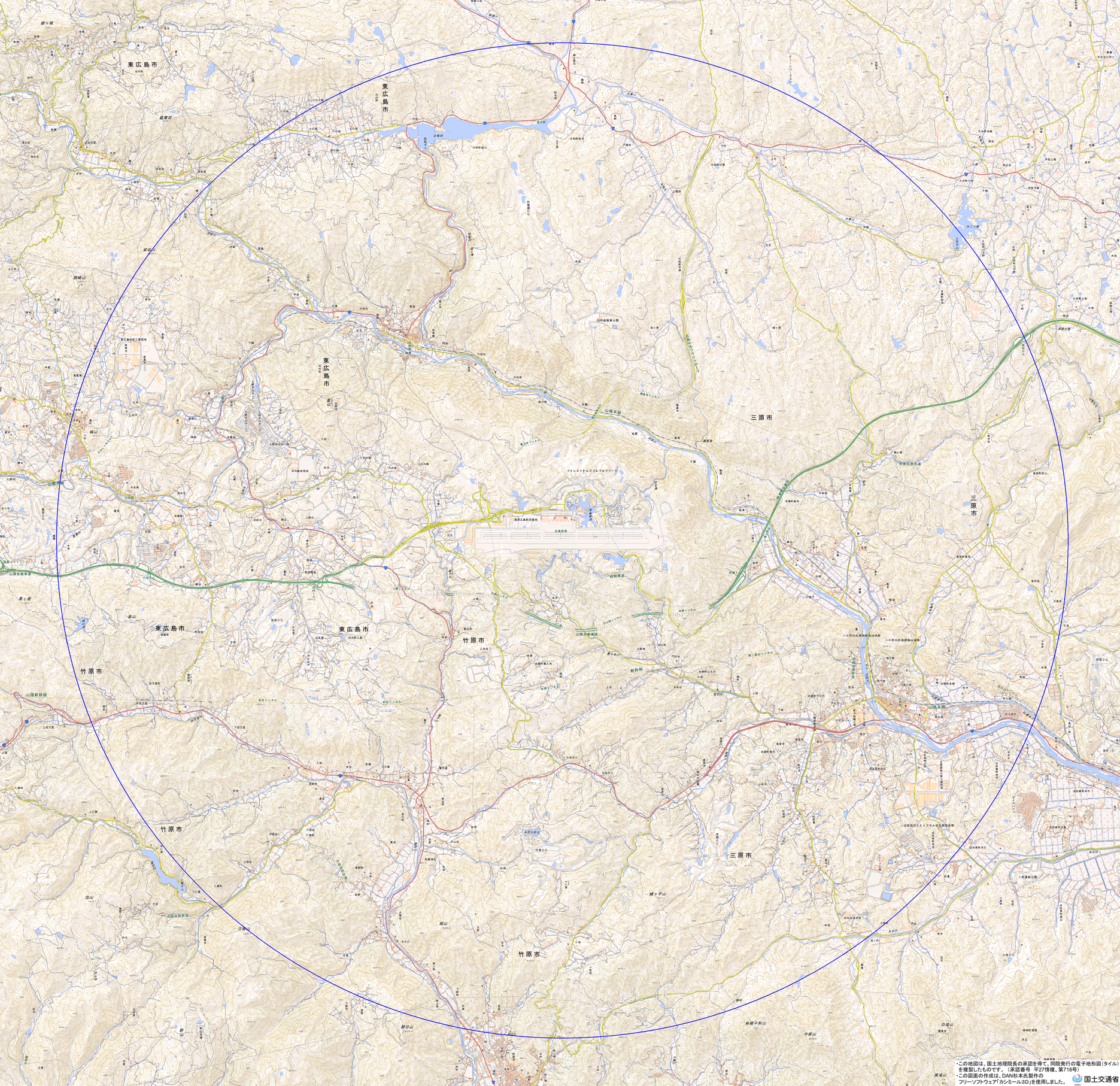 地理院地図) <広島県土木建築局空港振興課空港環境整備グループ TEL:082-513-4014>