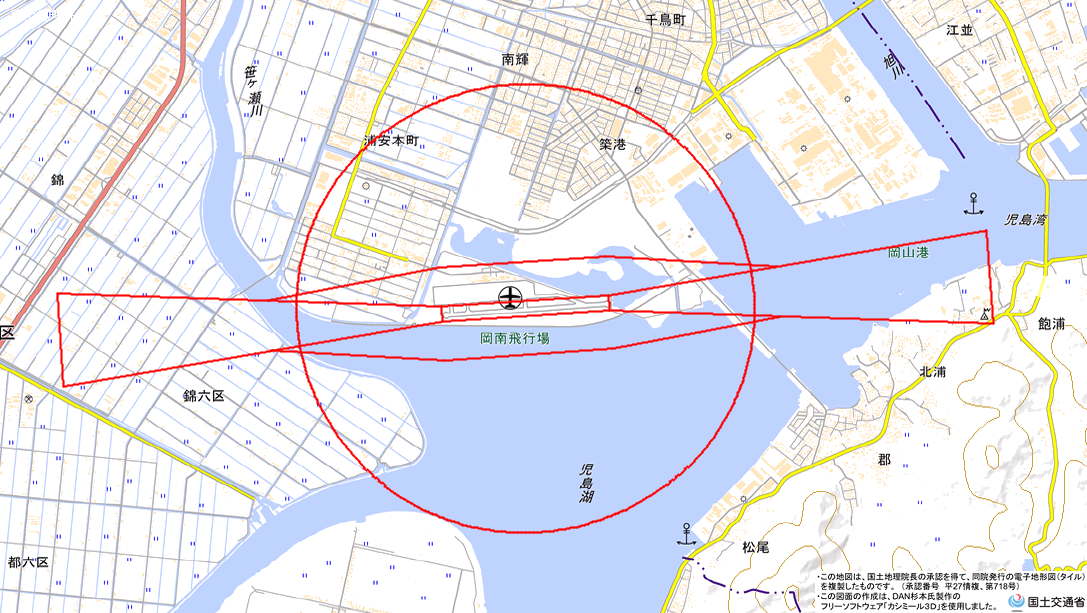 地理院地図) <岡山県岡南飛行場管理事務所 TEL:086-262-0954>