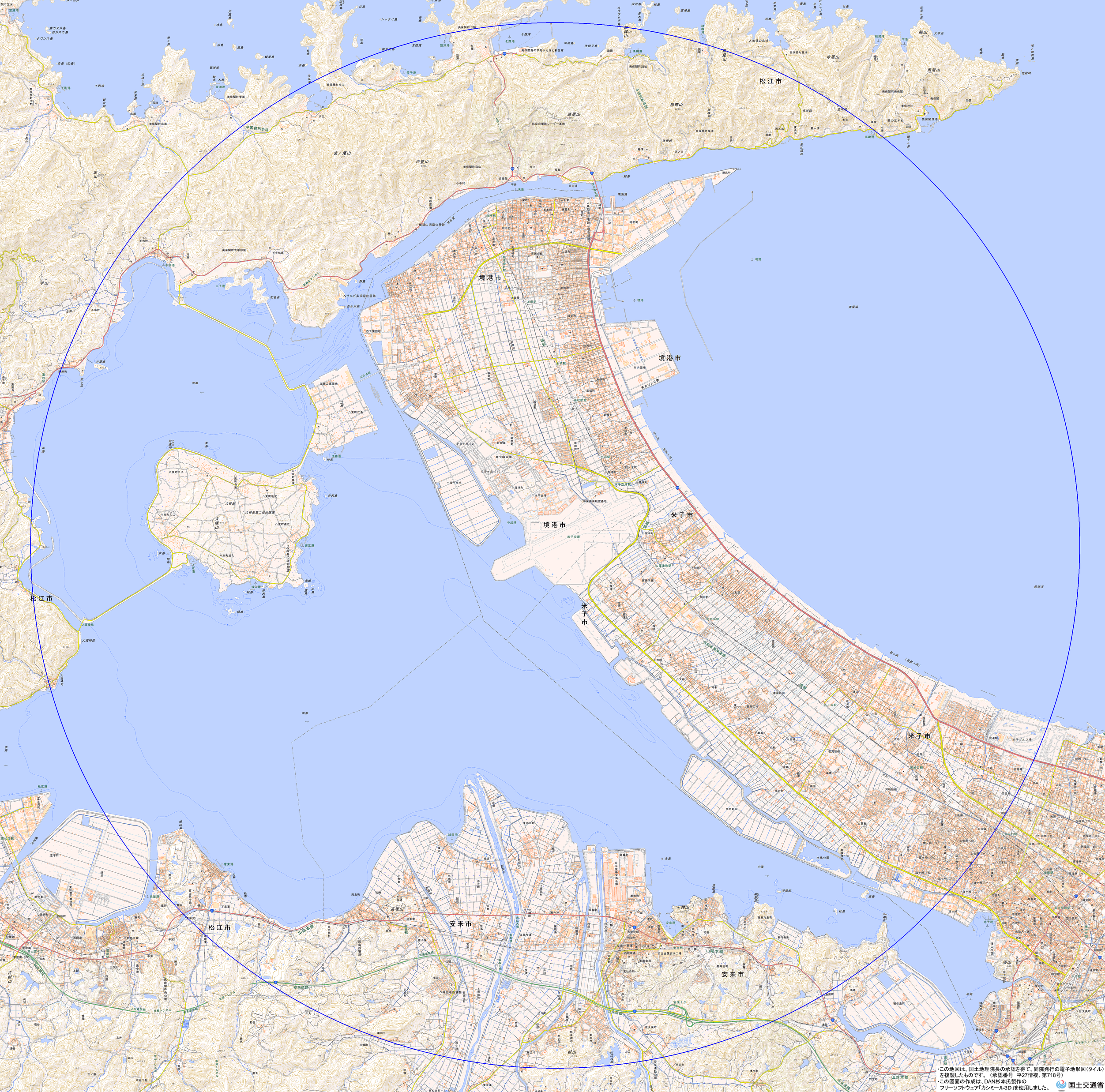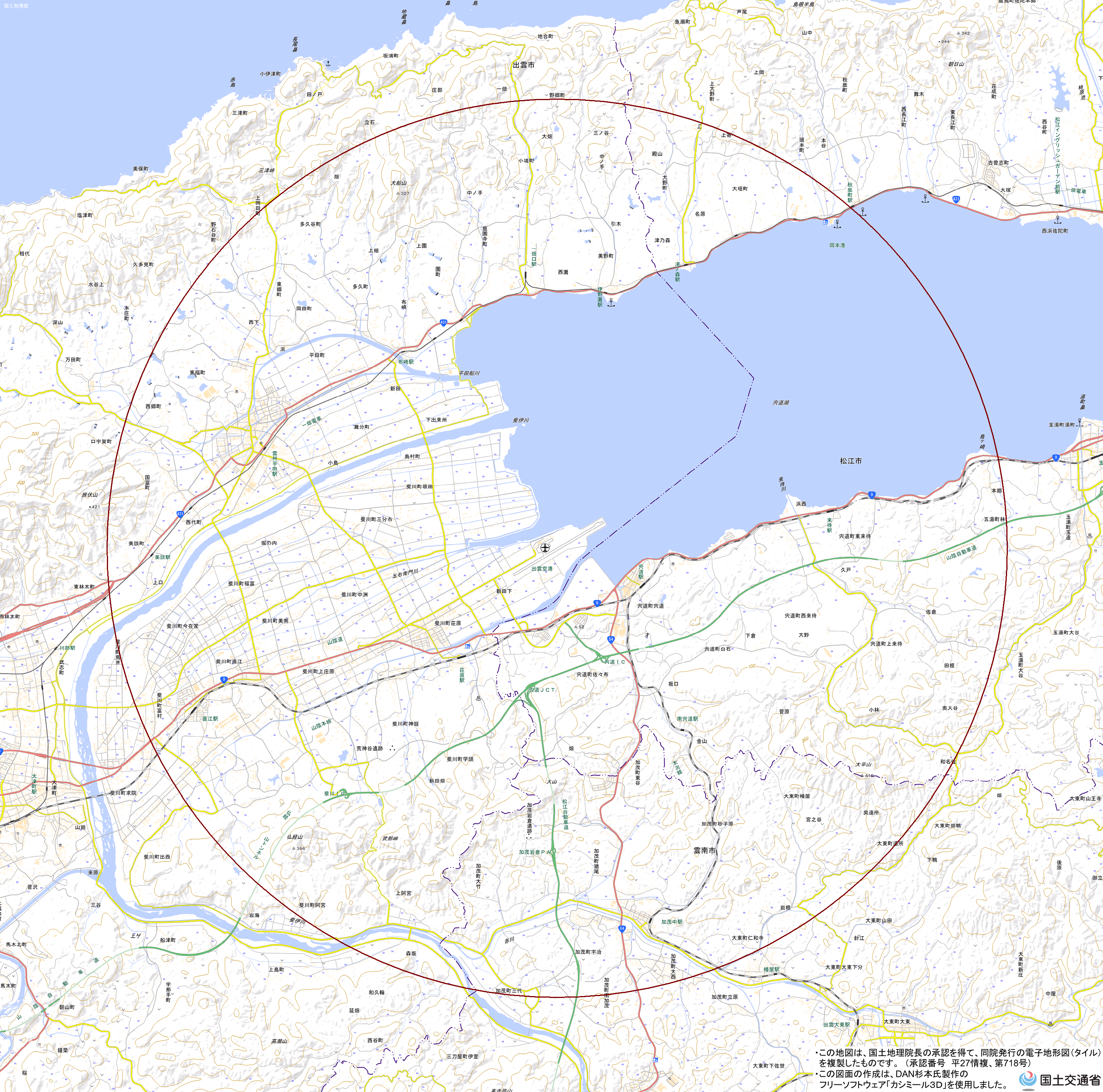 地理院地図) <島根県出雲空港管理事務所 TEL:0853-72-0224>
