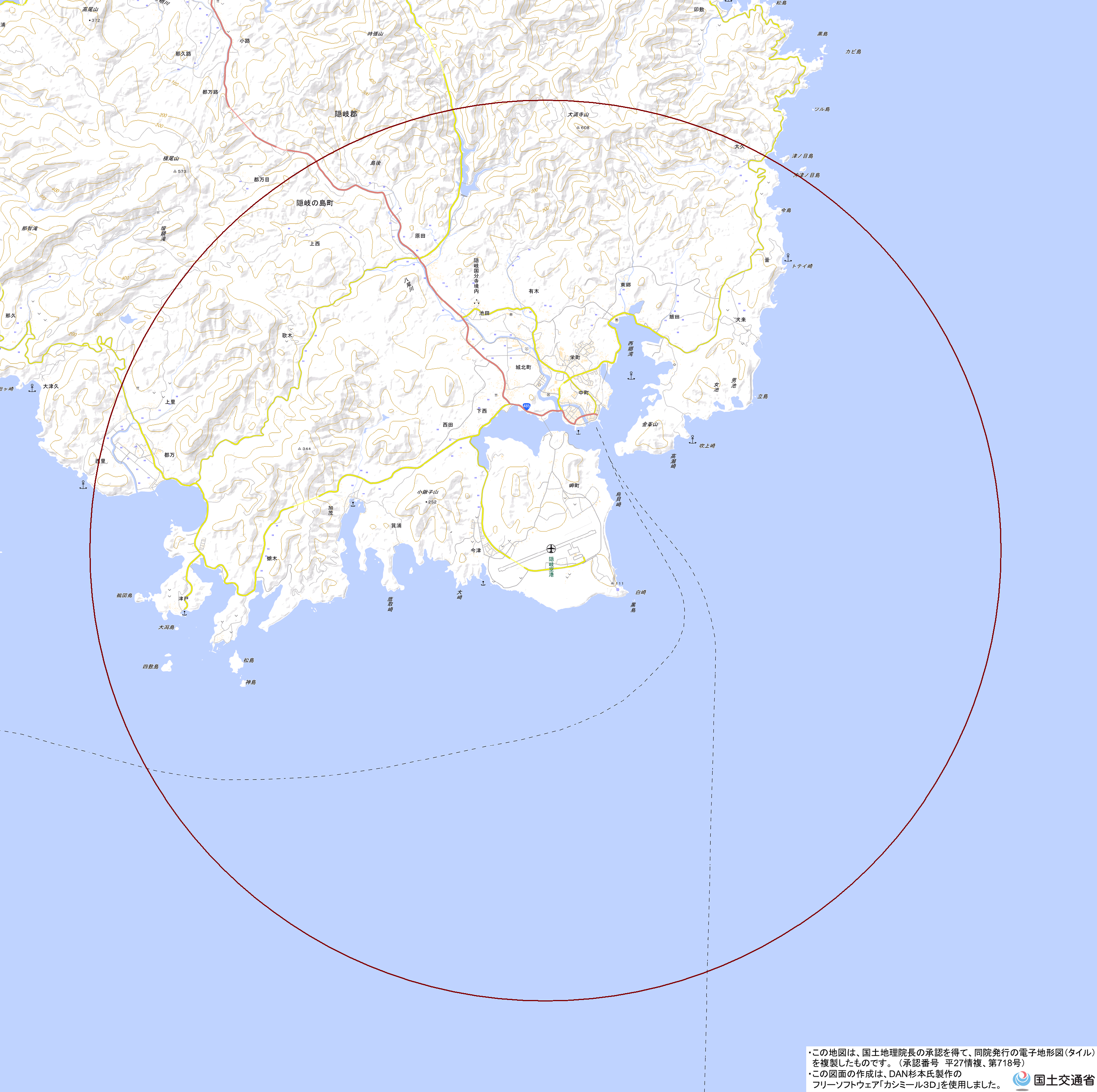 地理院地図) <島根県隠岐支庁県土整備局隠岐空港管理所 TEL:08512-2-0703>
