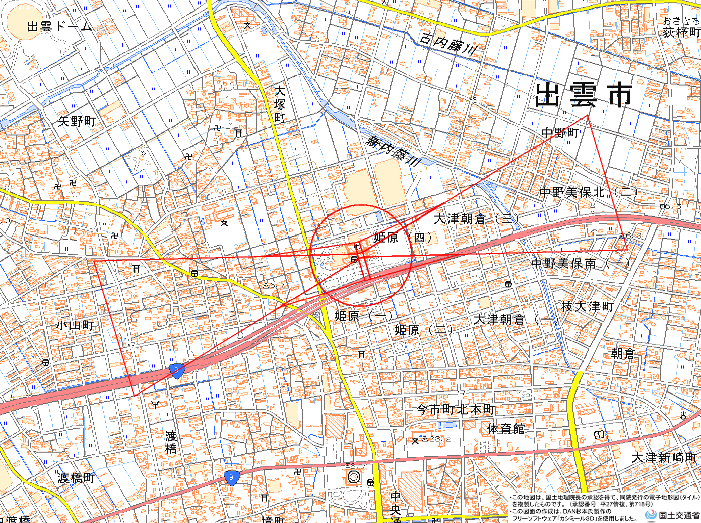 地理院地図) <島根県立中央病院 事務局 施設管理課 TEL:0853-30-6435>