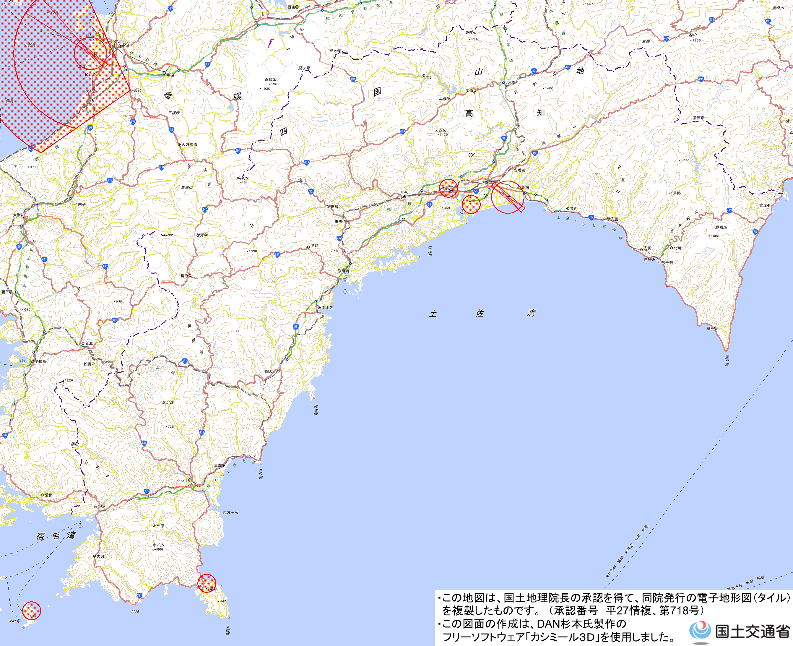 管制圏(PNG形式:8MB) <大阪航空局高知空港事務所 TEL:088-863-2621 e-mail:cab-kochikansei@mlit.go.jp>
