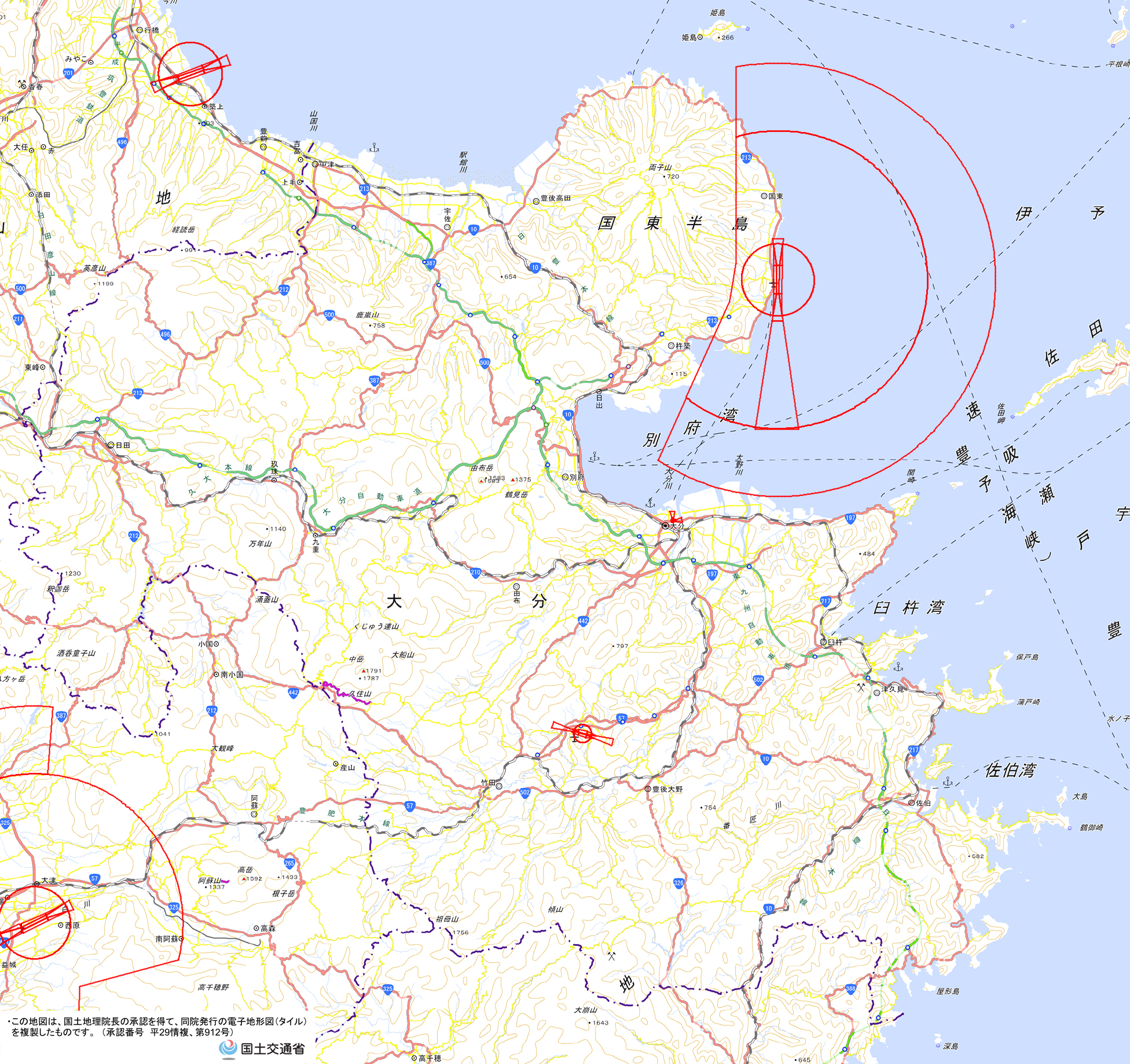 管制圏(PNG形式:6MB) <大阪航空局大分空港事務所 TEL:0978-67-3775 e-mail:cab-rjfoatc1@mlit.go.jp>