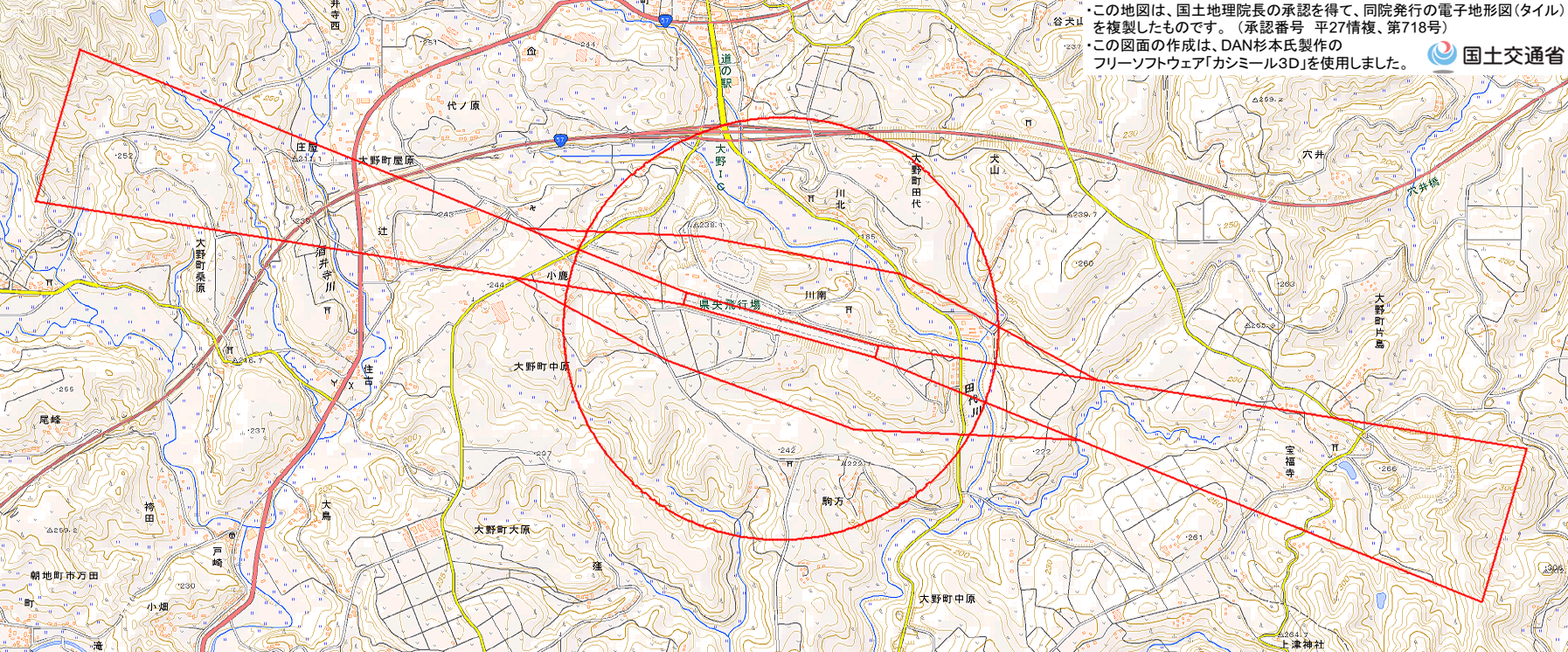 地理院地図) <大分県央飛行場管理事務所 TEL:0974-34-4411>