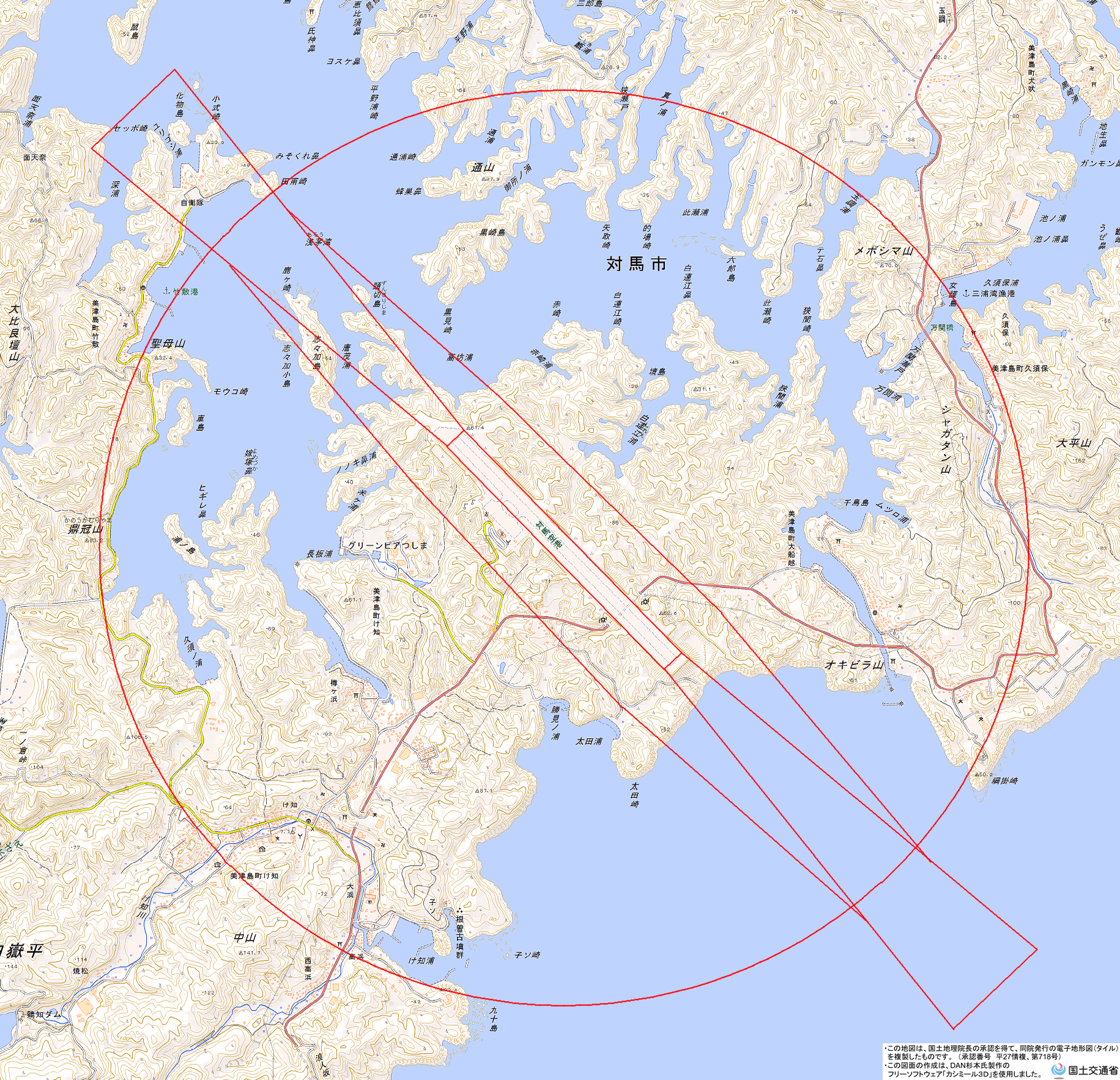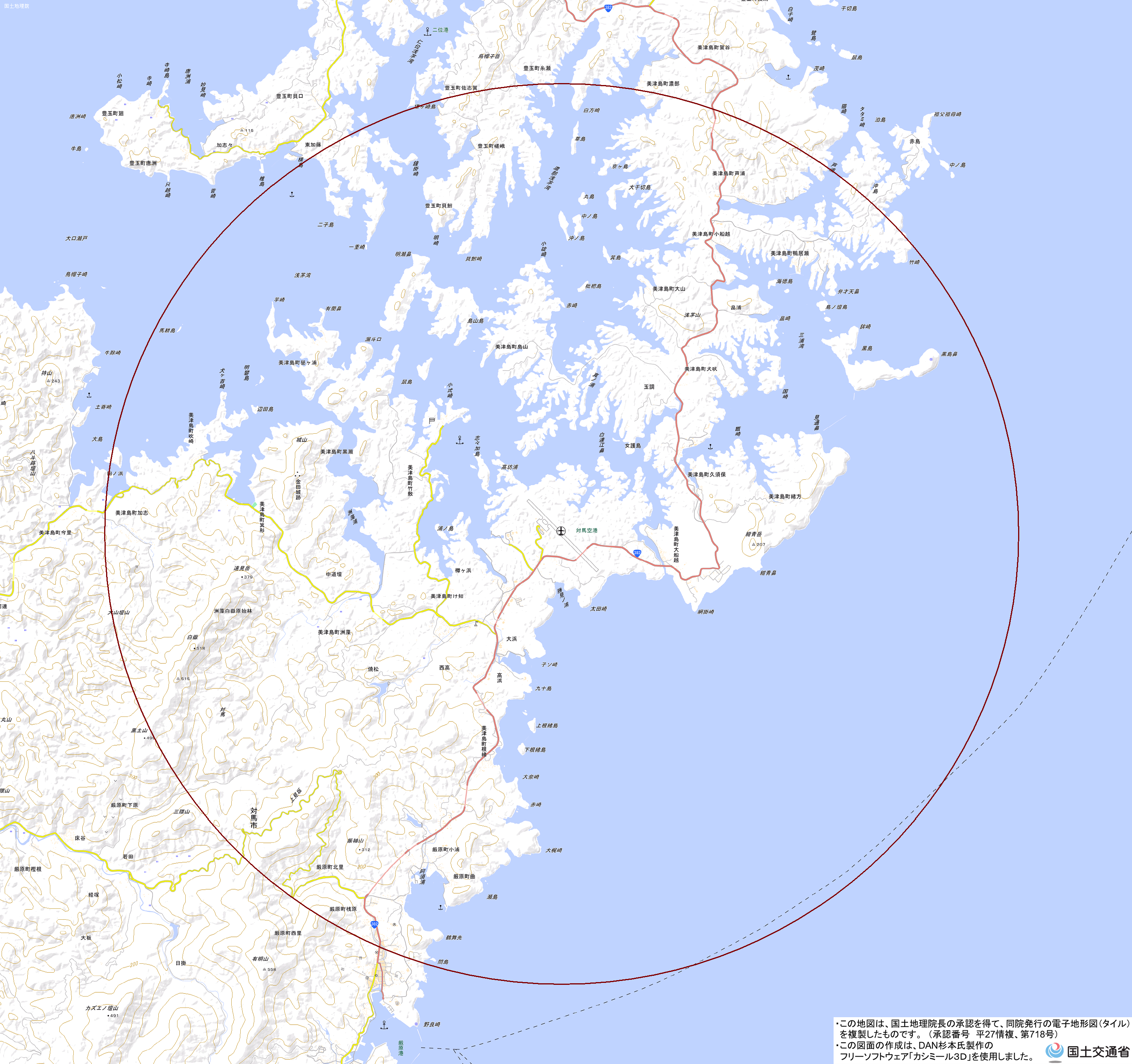 地理院地図) <長崎県対馬振興局対馬空港管理事務所 TEL:0920-54-2159>